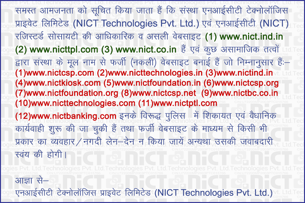 Copyright NICT Technologies Pvt. Ltd. Privacy Policy