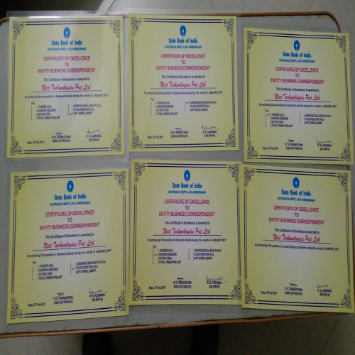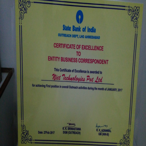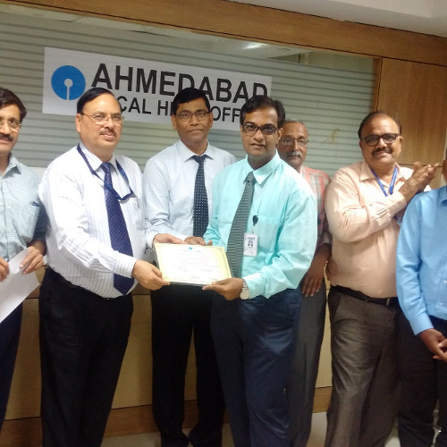 FIRST POSITION IN OVERALL OUTREACH ACTIVITIES DURING THE MONTH OF JAN-2017 Across National Business Correspondent.Awards have been given by Shri R K AGRAWAL (GM of SBI), Shri K K SHRIWASTAWA (DGM Of SBI Outreach Dept) and Shri Sunil Shah (AGM Of SBI Outreach Dept)
